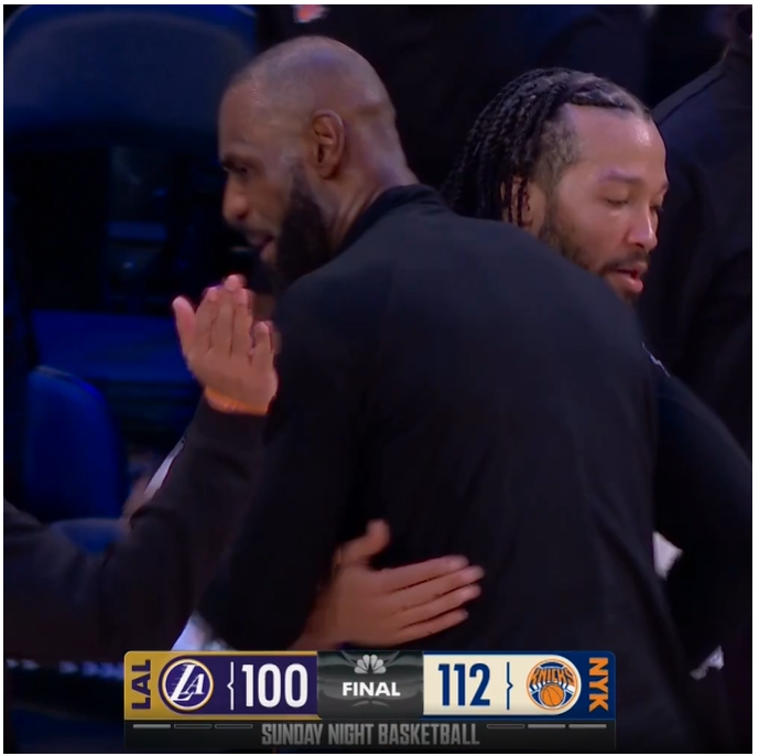麦迪逊花园的温情时刻 詹姆斯赛后与尼克斯全员的“兄弟式拥抱” 2026年3月的纽约,麦迪逊花园广场的灯光渐暗,终场哨响的刹那,记分牌上的数字定格在湖人112-108尼克斯。观众席的喧嚣还未散去,一道