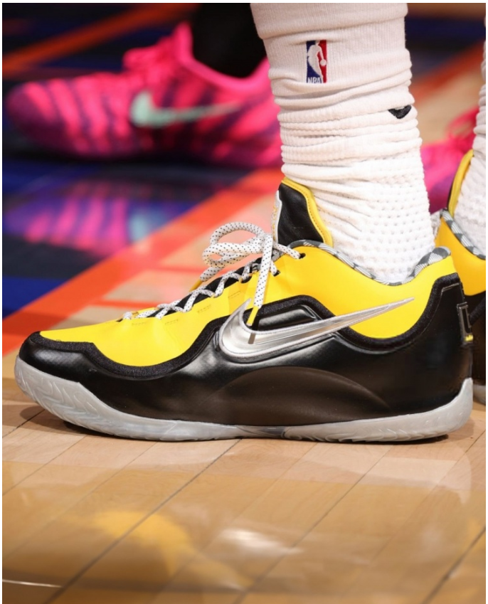 麦迪逊花园的聚光灯下 一双“出租车”PE唤醒纽约记忆 2026年2月的纽约,麦迪逊花园广场的穹顶下,勒布朗·詹姆斯的身影出现在热身区。当他弯腰系紧鞋带时,镜头捕捉到了鞋舌上醒目的“23”刺绣——这不