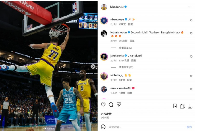 东契奇扣篮照引调侃,霸气回怼尽显巨星风范 在NBA的赛场上,球员之间的互动和玩笑常常成为球迷们津津乐道的话题。近日,达拉斯独行侠队的当家球星卢卡·东契奇在社交媒体上晒出了一张自己扣篮的精彩照片,然而
