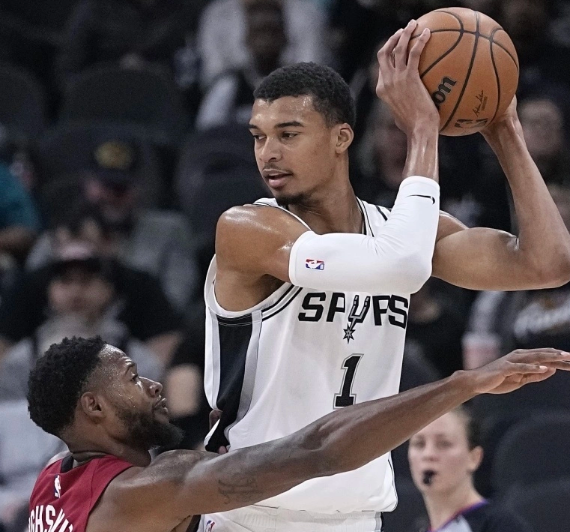10 月 31 日讯,圣安东尼奥马刺在主场迎来历史性时刻,凭借核心维克托 - 文班亚马的统治级表现,以 107-101 力克迈阿密热火,豪取新赛季开局 5 连胜。这一战绩不仅改写了马刺队史最佳开局纪录,更让这支沉寂多年的王朝球队正式宣告回归,而 23 岁的文班亚马用一场 27 分 18 篮板 6 助攻 5 封盖的全能表现,证明了自己正是马刺复兴的核心引擎。